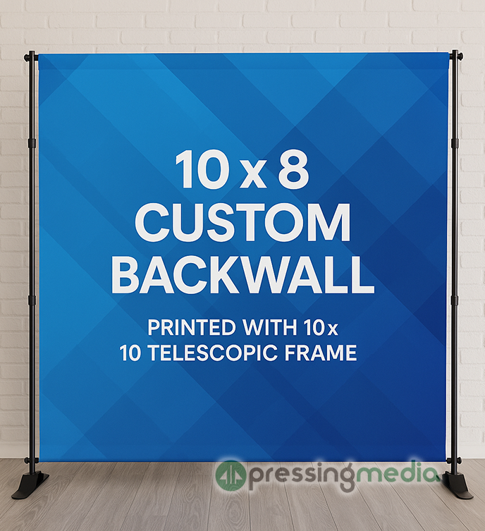 Our 8×8 Backwall Displays deliver bold, high-resolution visuals printed in full-color CMYK on durable 10 mil White Block-out Banner material. Designed with a smooth matte finish and a black light-blocking center layer, these displays ensure your artwork looks sharp and professional in any lighting.